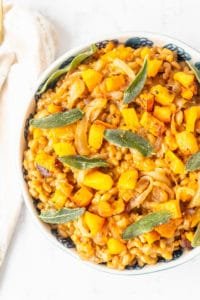 Caramelized Onion Farro Risotto with Butternut Squash and Sage